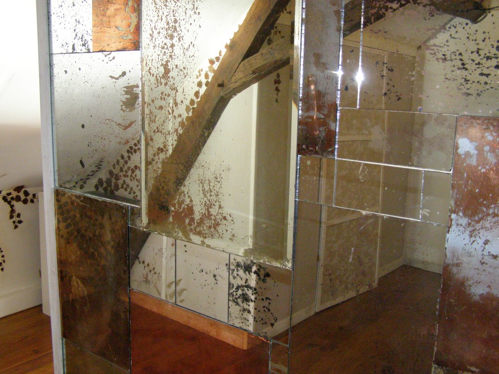 We have been collecting old mirrors for ages…raiding the vide greniers and brocantes for bargains. It was taking so long to get enough to cover the whole wall, then our neighbours stepped in and donated loads of new ones they found in a barn they were clearing.